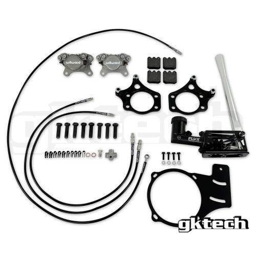 The GKTECH S-chassis dual caliper hidden hydraulic e-brake setup is the only COMPLETE kit available anywhere. Literally, everything required is included and it's a range of GKTECH and Wilwood components. If you have an S-chassis and you want your rear brakes to lock up in an instant, this kit is the way to go.